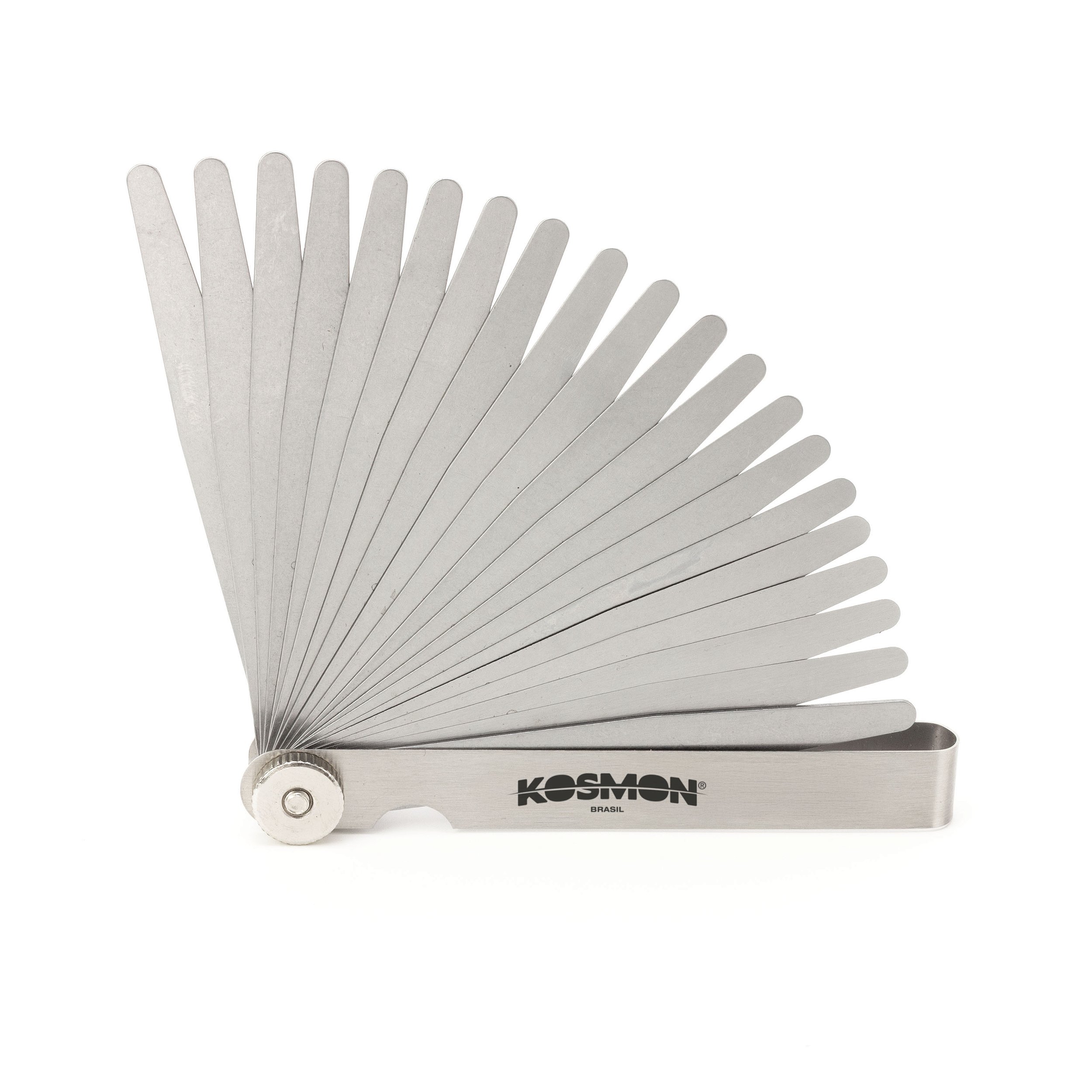 - Lâminas em aço temperado com gravação da espessura em cada uma